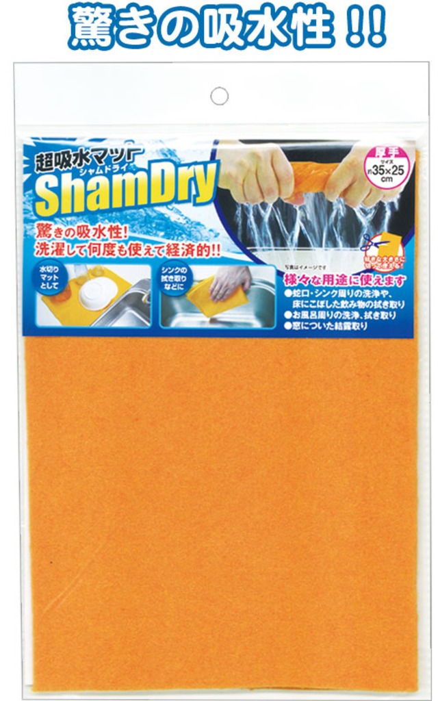 【まとめ買い=12個単位】でご注文下さい!(40-039)超吸水マット・シャムドライ(厚手・35×25㎝)