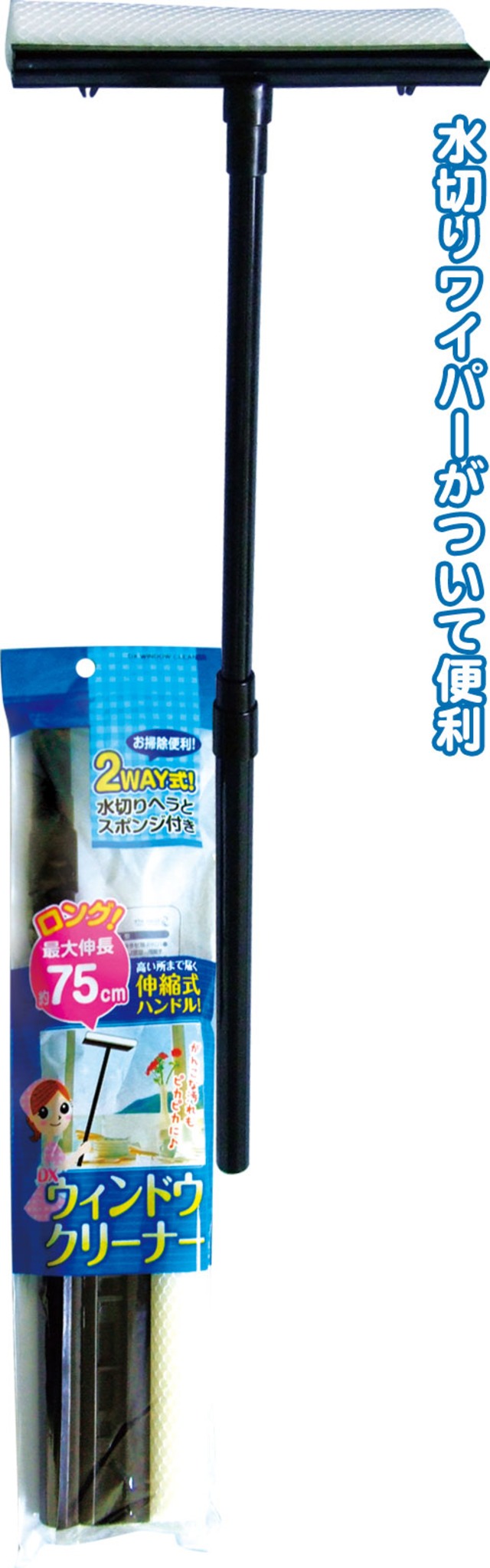 【まとめ買い=10個単位】でご注文下さい!(43-216)伸縮式ハンドルDXウィンドウクリーナーヘラ&スポンジ付75㎝